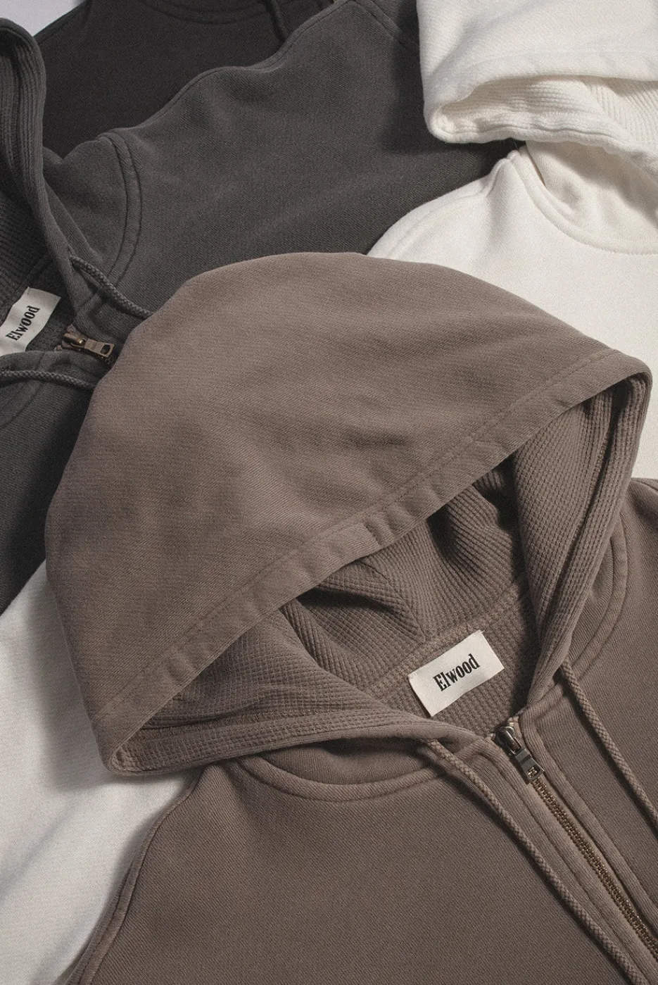 100% ORGANIC COTTON12 OZ BRUSHED TERRYCROPPED LENGTHOVERSIZED FITDROP SHOULDERINSPIRED BY VINTAGE GARMENTSOur Core Zip H…
