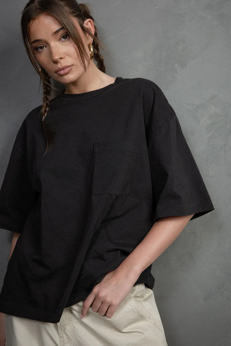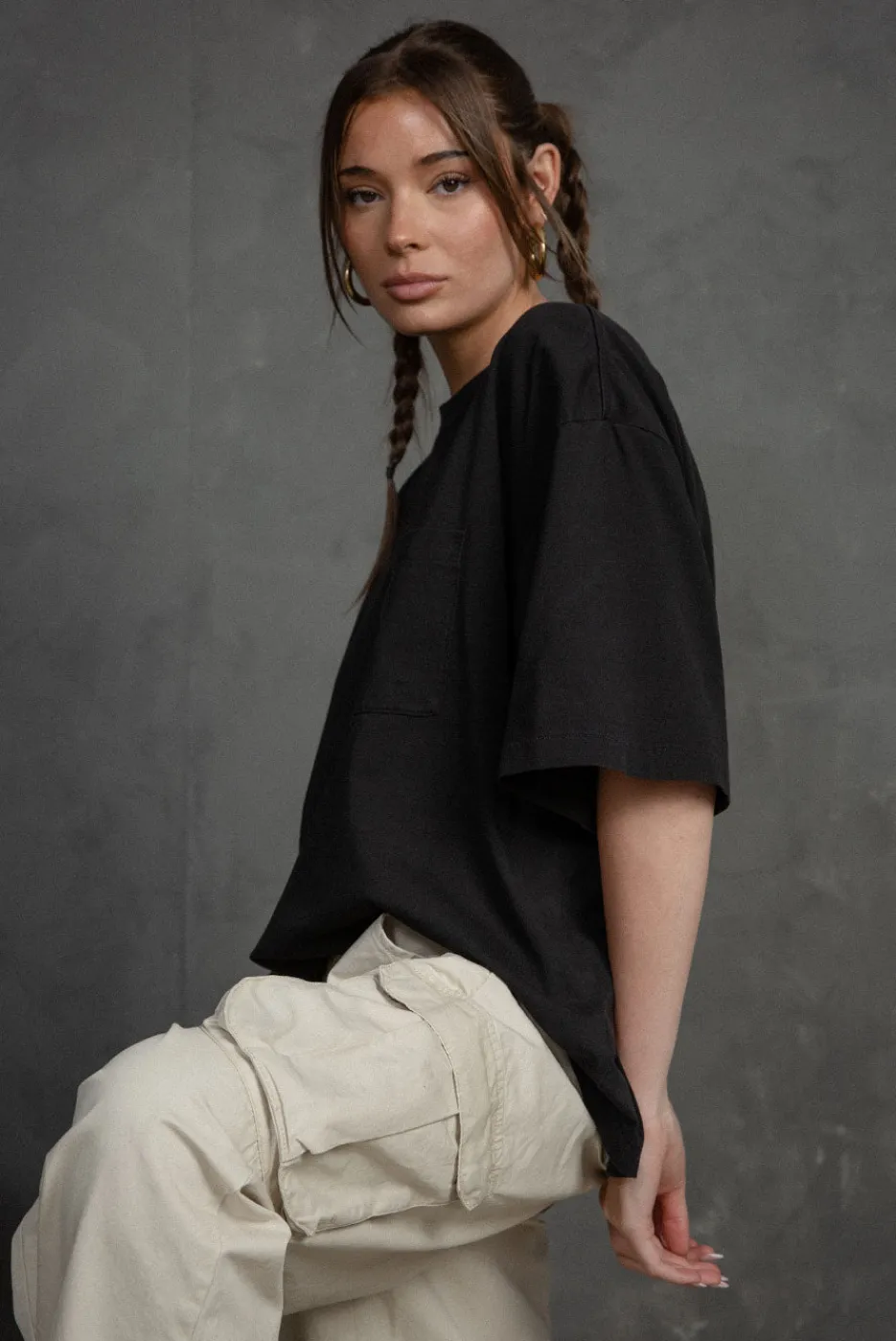 100% Organic Cotton Chest Pocket DetailDrop Shoulder Seams to Emphasize Boxy FitBOX TEE