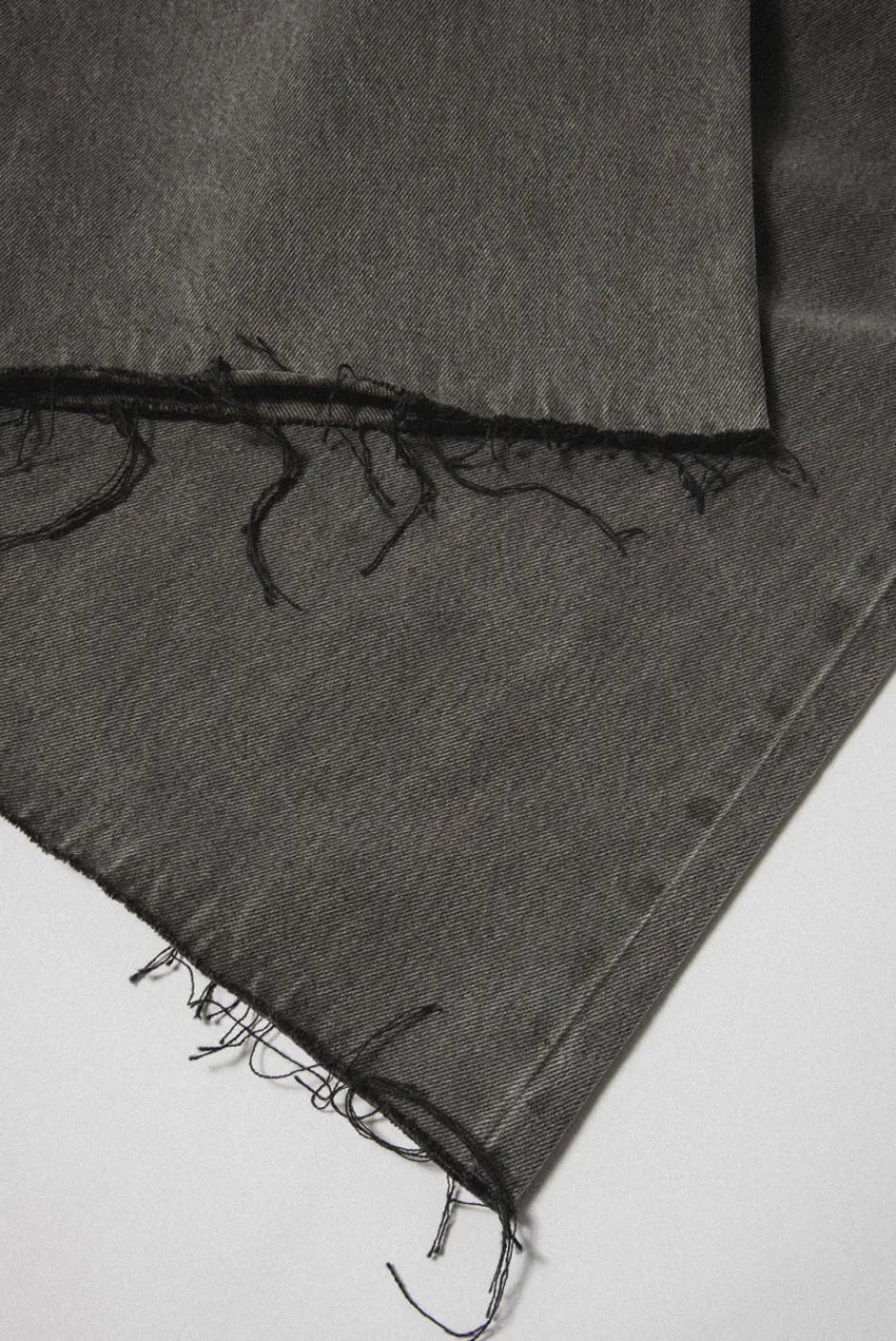 The Flare Denim jeans have a dramatic wide-leg for an ultra baggy fit. Unfinished with a raw hem and plaid waistband for contrast detail. Available in a dark gray ‘City Wash’.