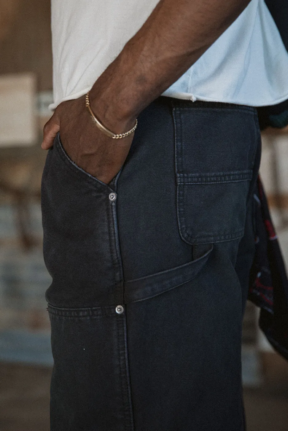 100% COTTON DENIM, 14.9 OZ AWELWOOD BRANDED METAL RIVETSDIME POCKETBASED ON A VINTAGE CARPENTER PANT