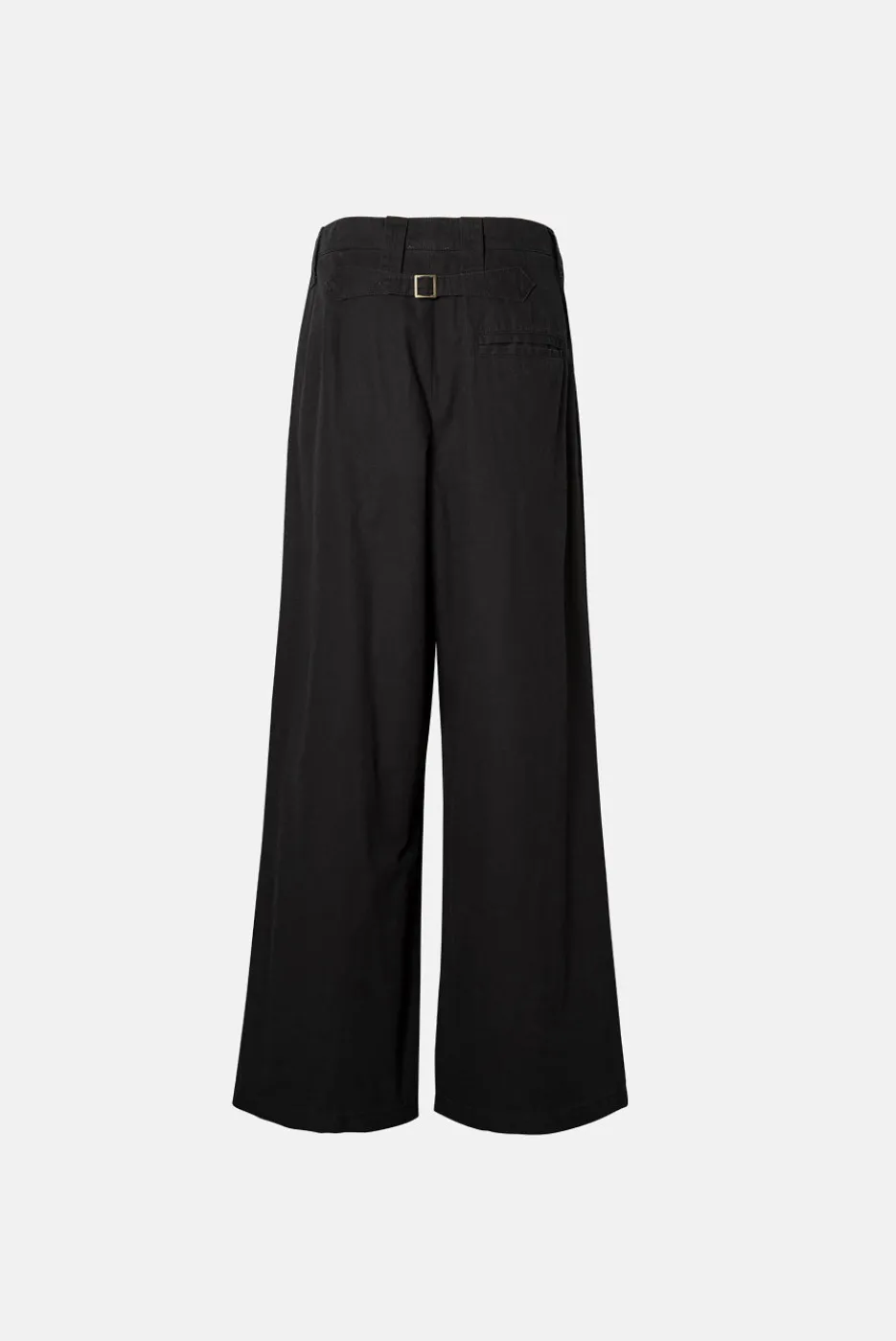 The Lasso Pant is a roomy, lightweight cotton trouser pant. Featuring a wide-leg and back cincher for an adjustable, tailored fit. Available in Black Ink and Sand.