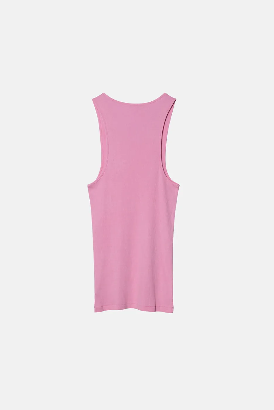 An essential lightweight tank for layering. Made with a slightly longer length in single-stitched 100% cotton rib. Garment washed for a vintage feel.