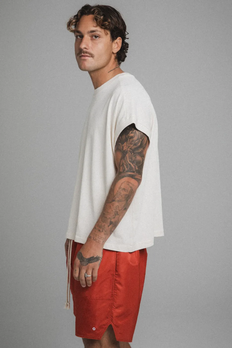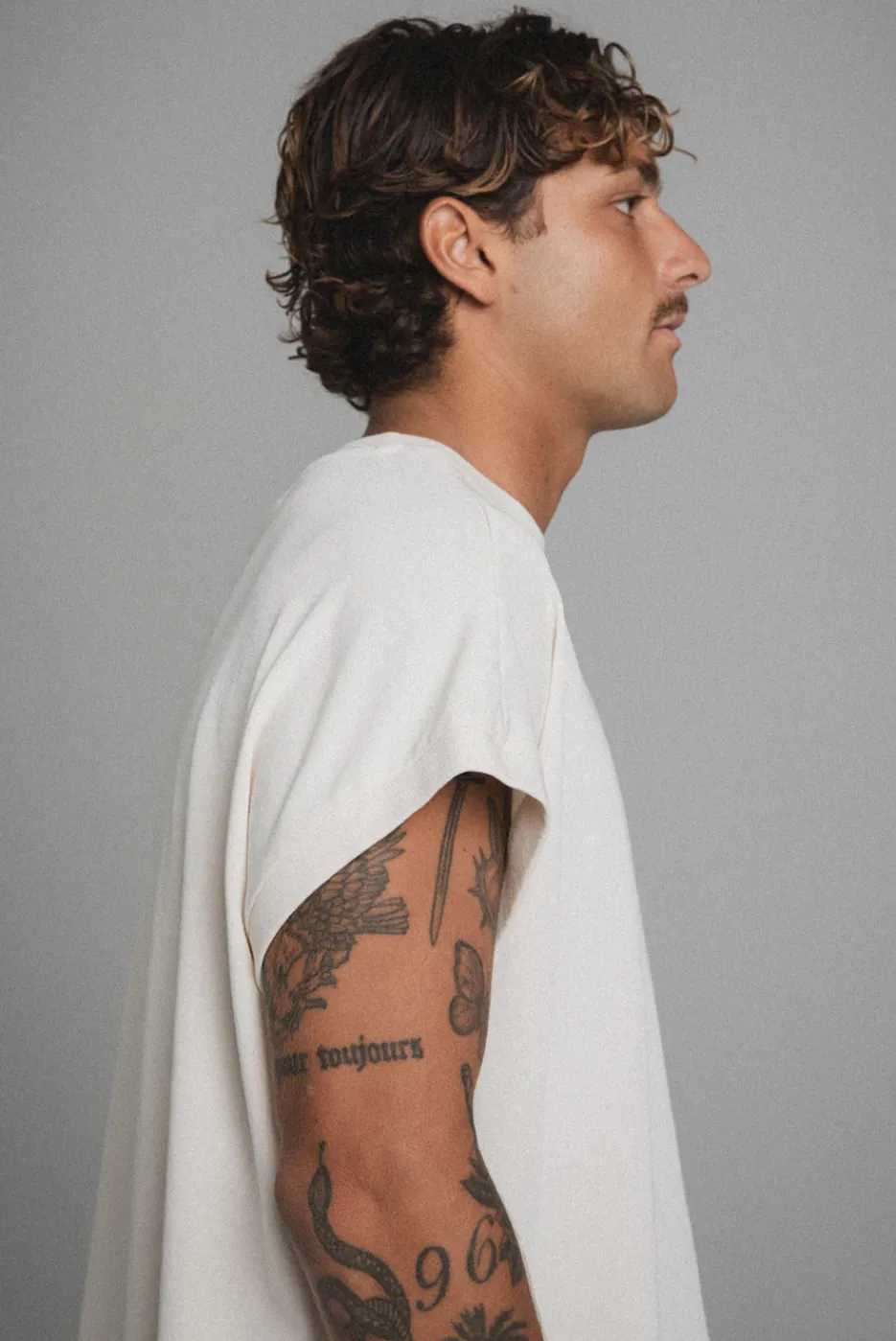 80% COTTON RIB 20% POLYESTER, 200 GSMTRIM FABRIC: RIB 2X1, 160 GSM VINTAGE WASHWho needs sleeves, anyway? The Muscle Tan…