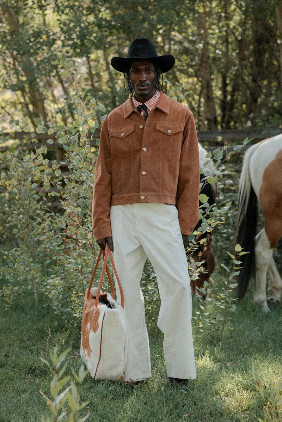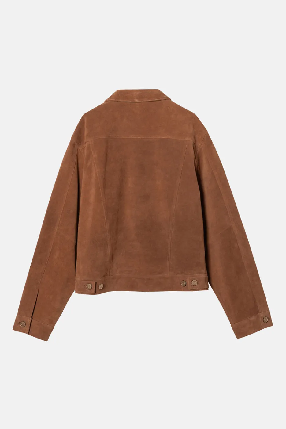 A classic Western jacket made from 100% genuine suede. Features tonal shank buttons, a slightly fitted silhouette, and traditional details. Available in Brown Suede.