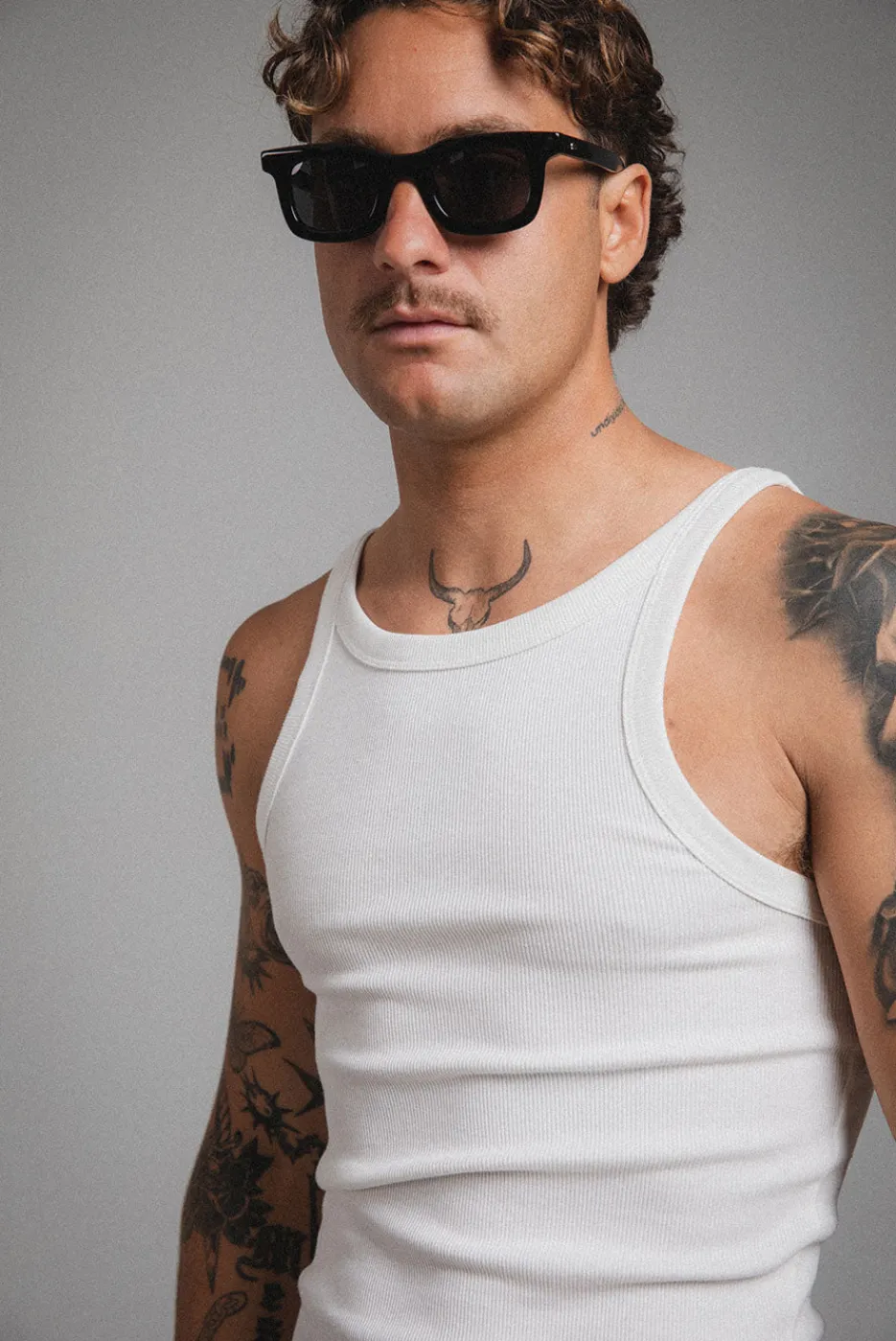 TINY TANK The Tiny Tank is a revisit of our Malibu Tank with a slimmer cut body and thinner straps for those of you that just want to show off some skin. Made from 100% cotton. Available in three colors.