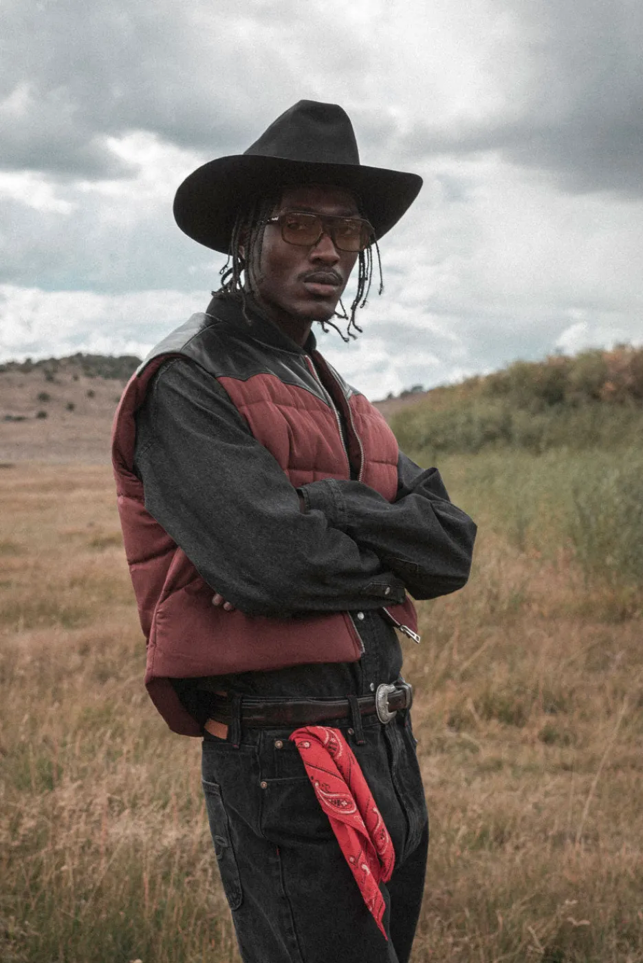 A bold puffer vest with a Western yoke, real leather accents, and a zip front. Designed with a pop of color, it’s filled for warmth and finished with a bright yellow lining. Available in Red and Tan.