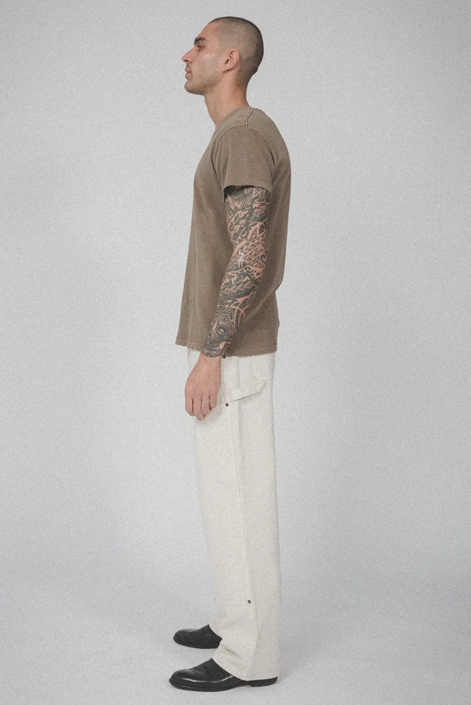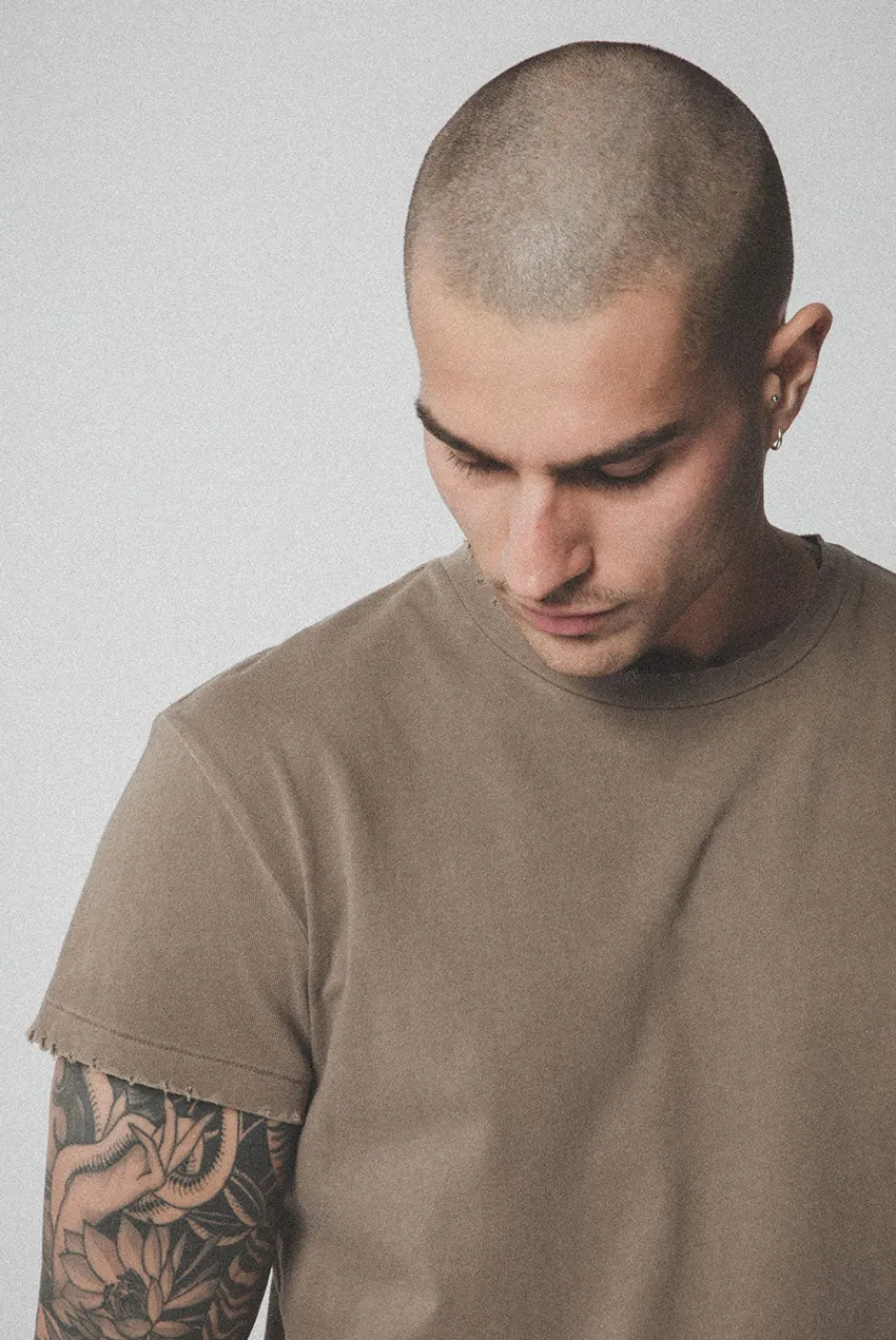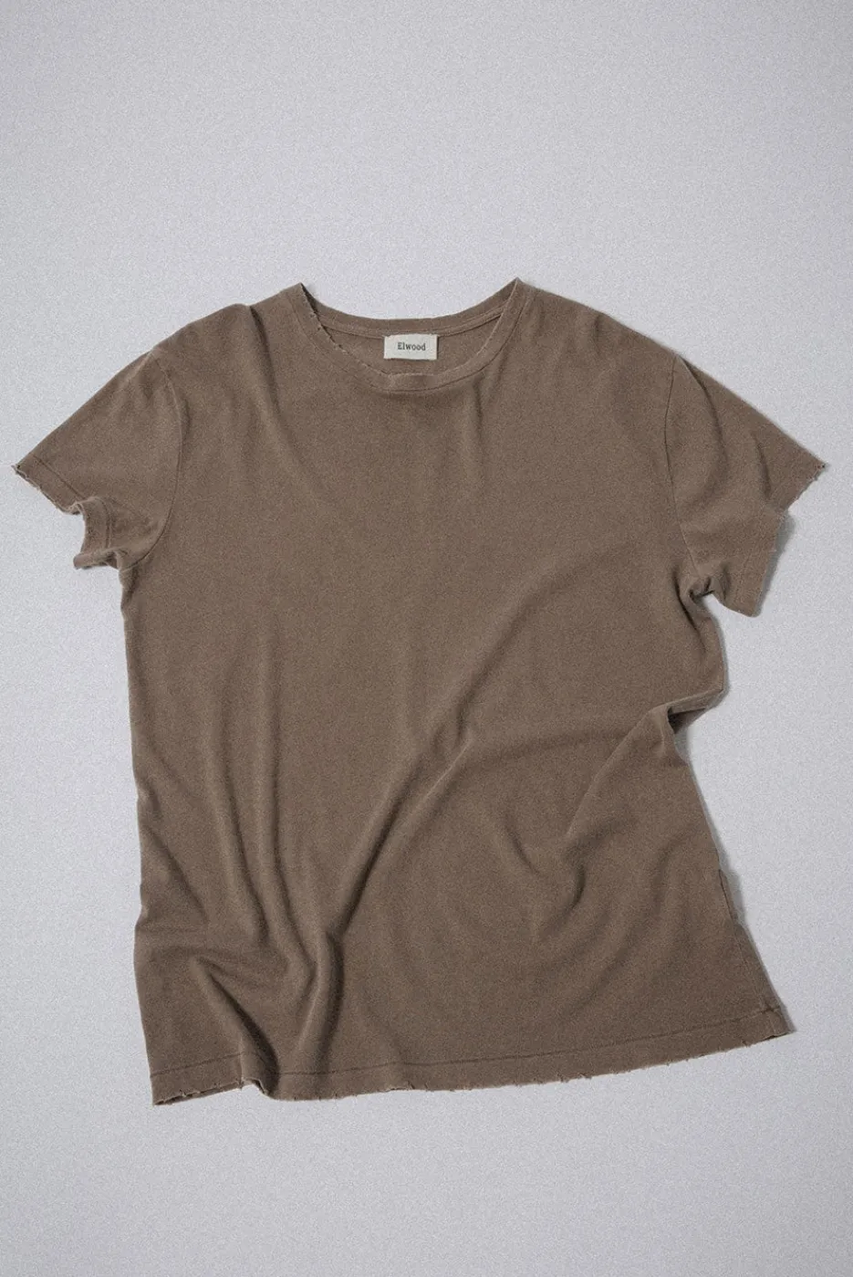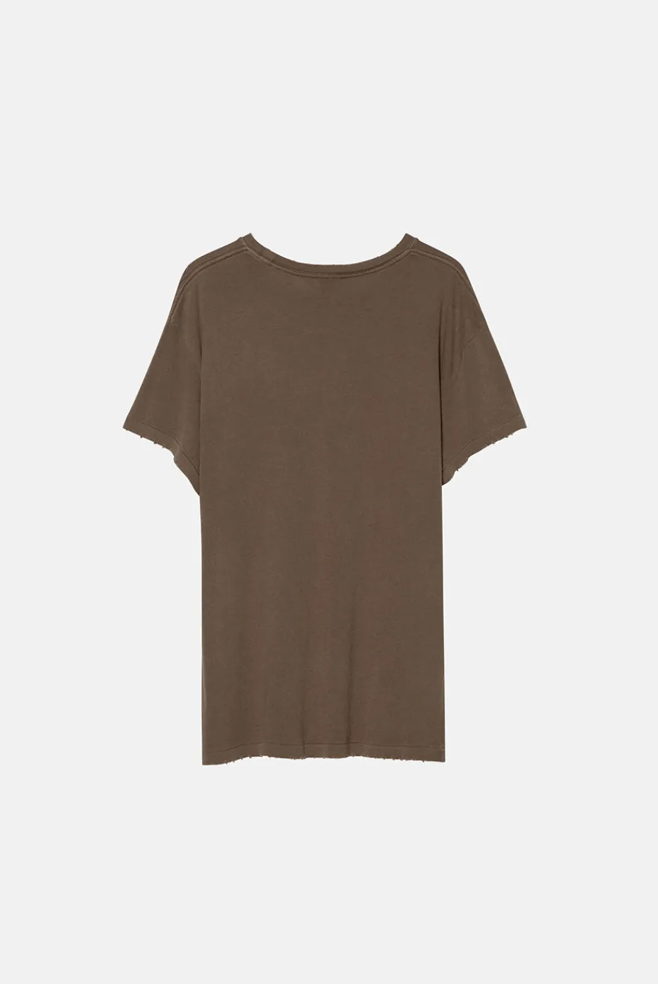 A vintage-inspired tee with a standard fit, cap sleeves, and slightly longer and slimmer proportions. Made with hand-distressed garment washed 100% cotton jersey.