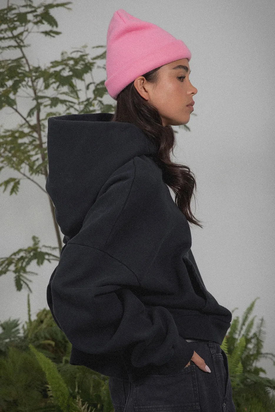 This beanie is made with cashmere and a mohair-wool blend for a soft handfeel that keeps you warm. Embroidered with a contrasting cursive Elwood logo. Available in Black Ice, Pink, and Snow.