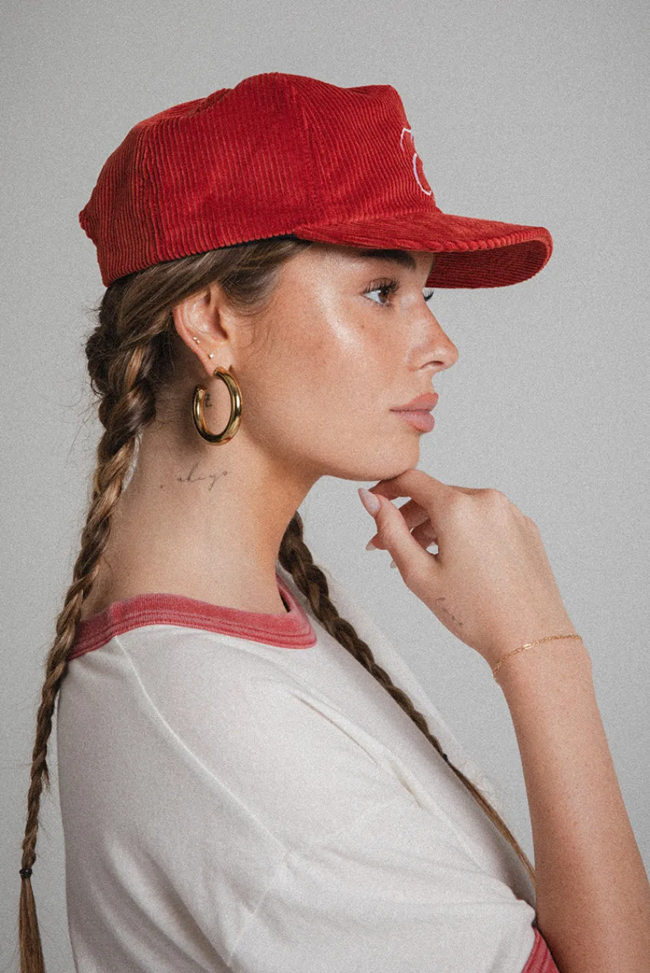 100% COTTONEMBROIDERED “E”SNAP CLOSURECORDUROY HATThis cut and sew hat features a high crown and “E” cursive embroidery….