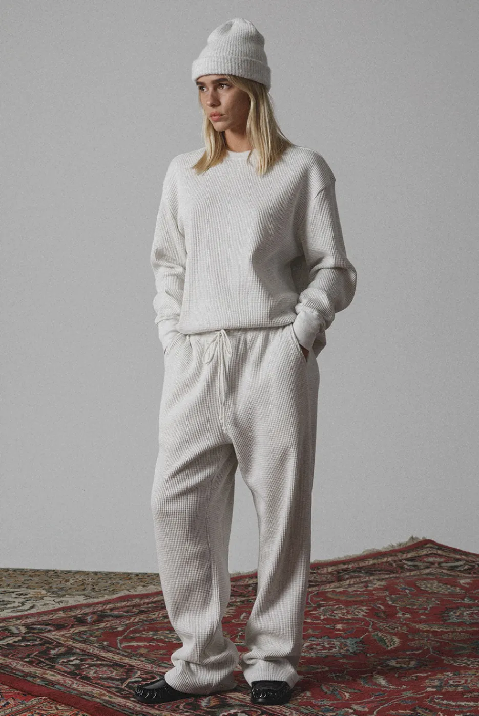 The Thermal Long Sleeve tee is made from our new dense thermal fabric, offering warmth with a slightly cropped, oversized fit. Ribbed neckband and cuffs keep the cold out, while the drop shoulders add a relaxed touch.