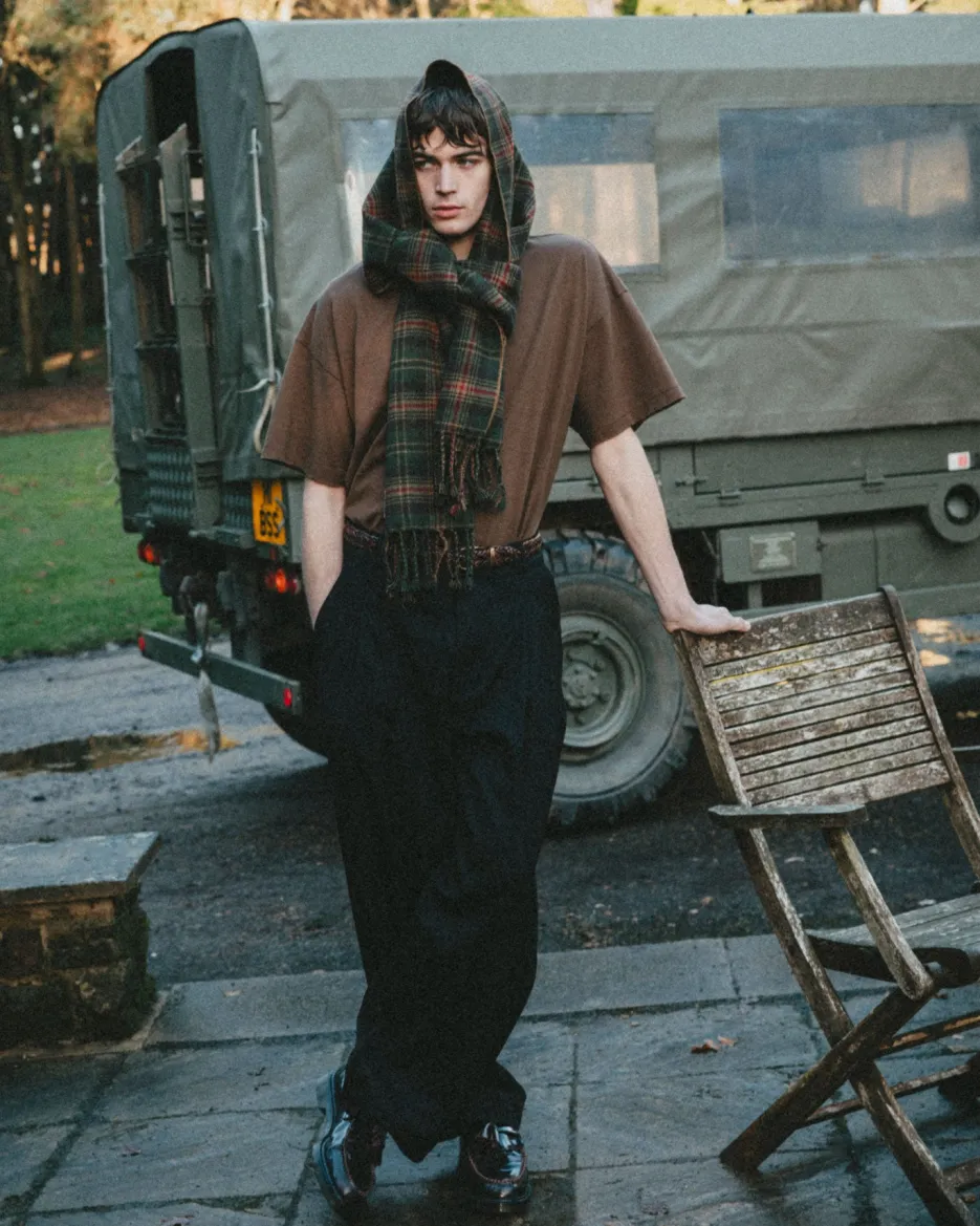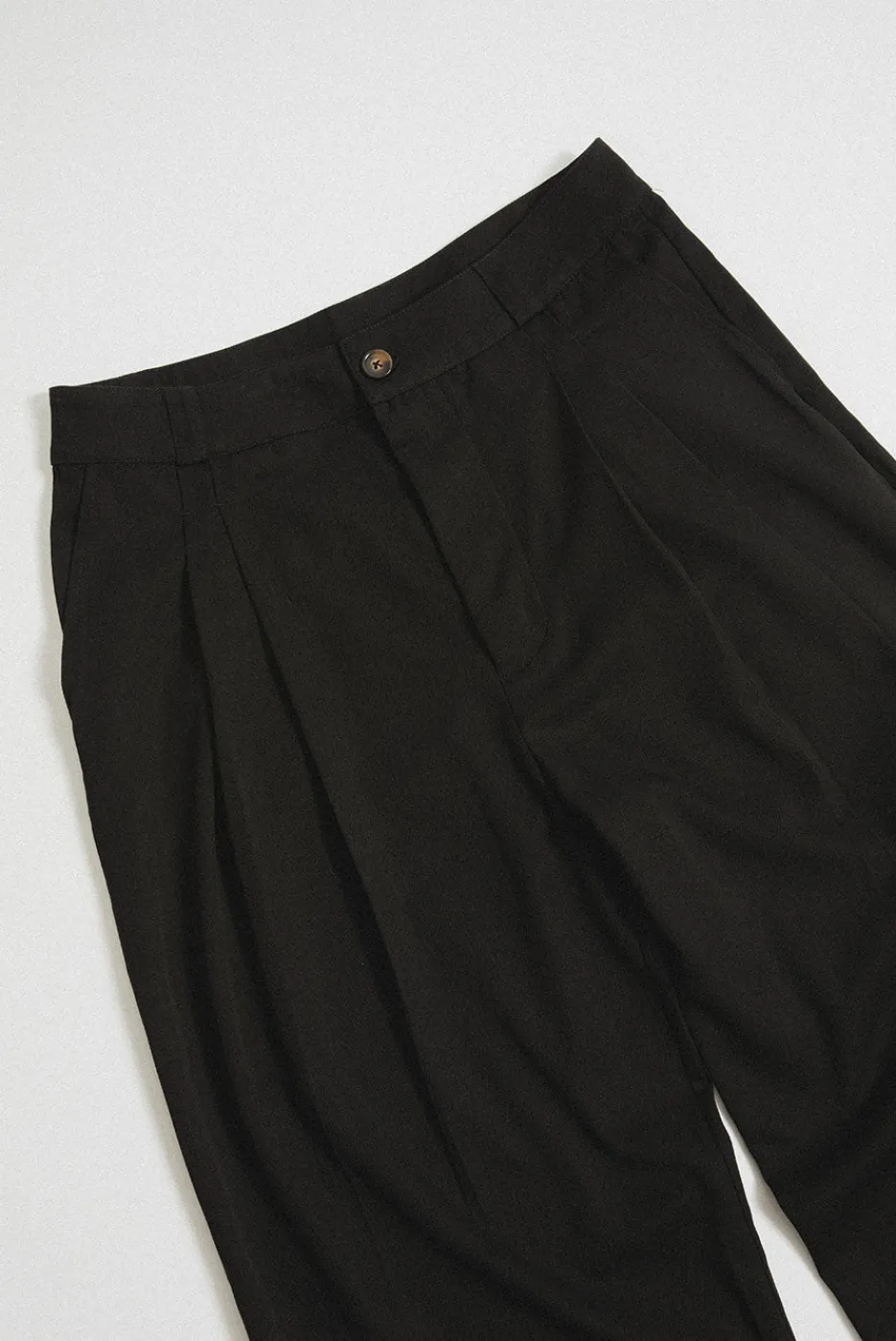 A lightweight, drapey pleated trouser inspired by our Big Pleats Chino Pant. The Courtyard Pant offers a wide-leg baggy fit for everyday wear. Available in Khaki and Soot.