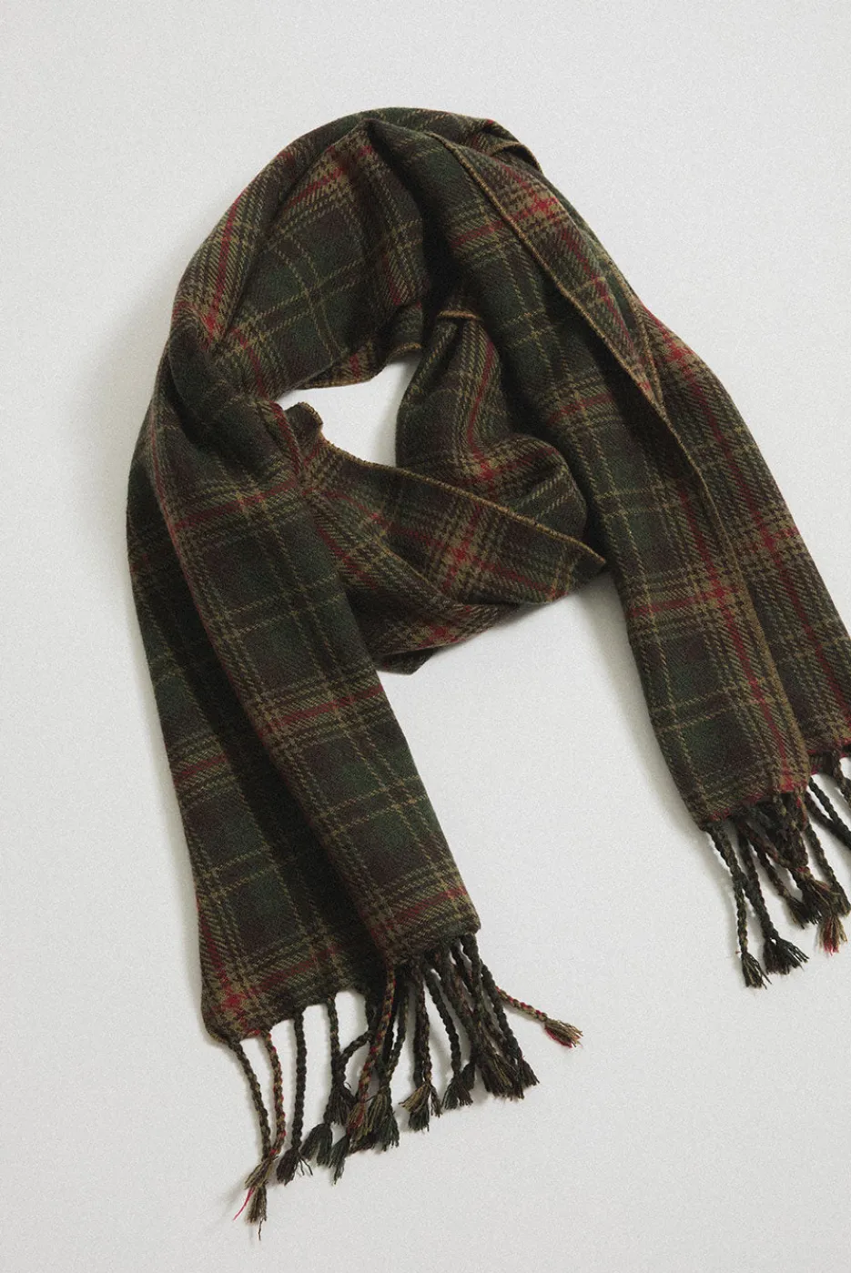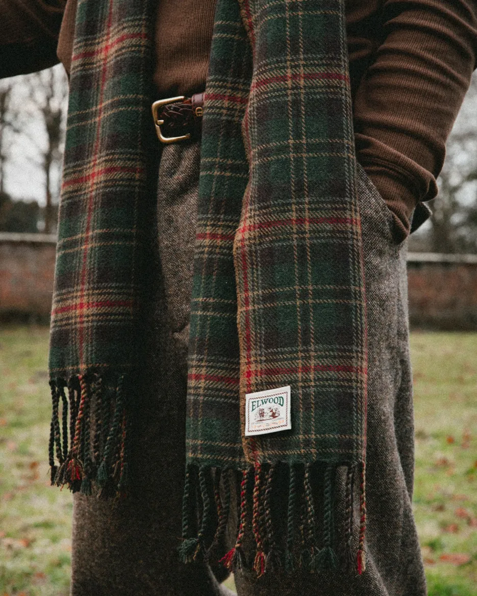 The Crest Scarf is crafted from the same wool-cotton fabric as the Emerald Hunter Vest. Finished with tassels and a custom Mitford tag. Available in Emerald Cottage Plaid.