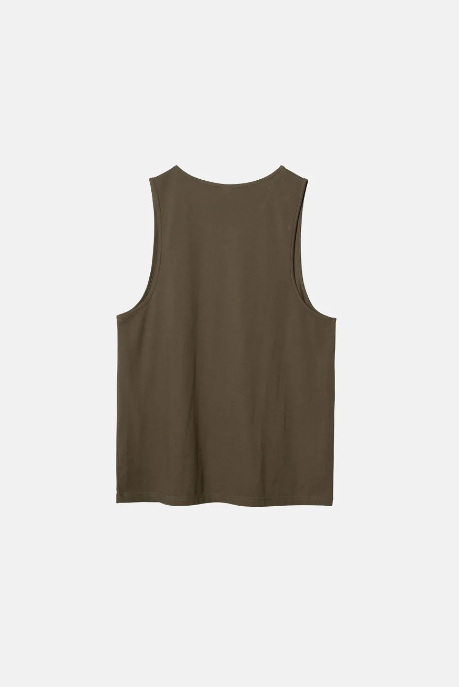 The Dodgy Tank is a loose-fitting layering piece. Crafted from breathable pique knit fabric, it features a wider cut and a billowy effect when tucked in. Available in Natural and Moss.
