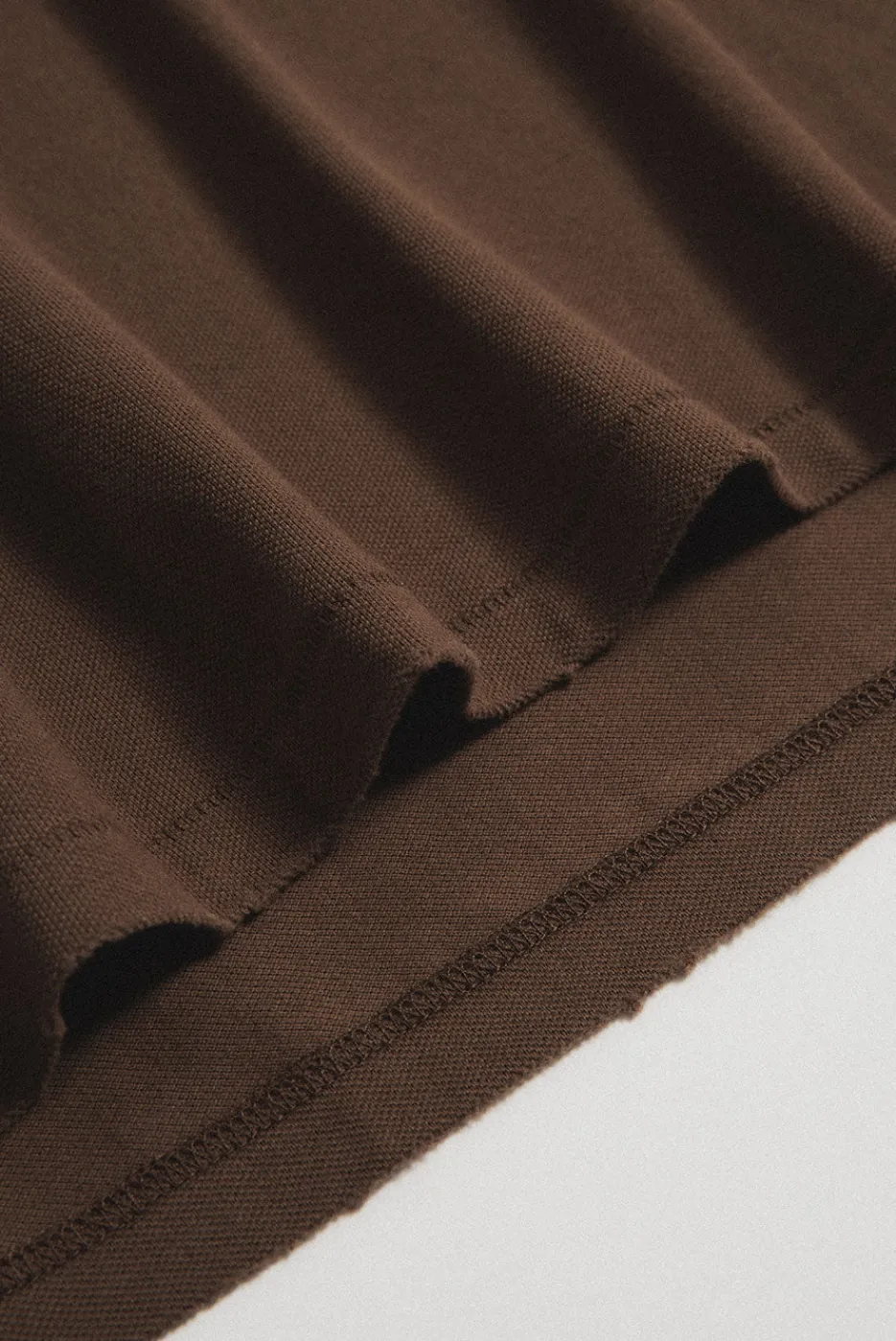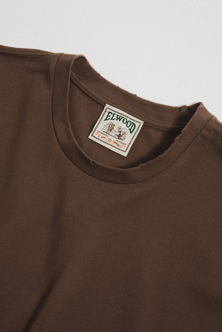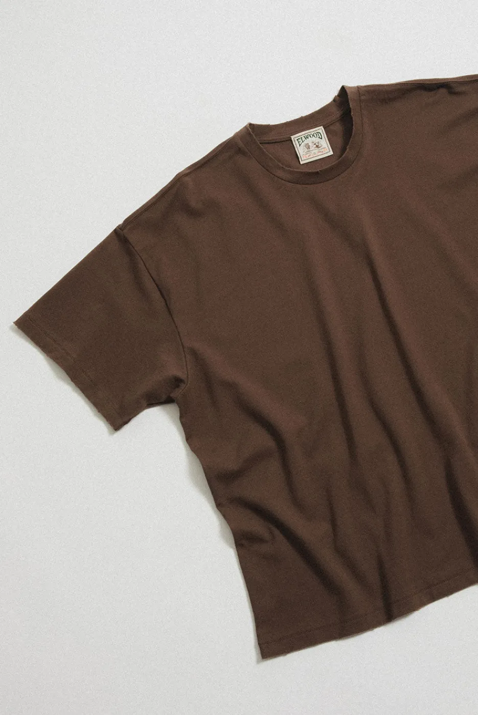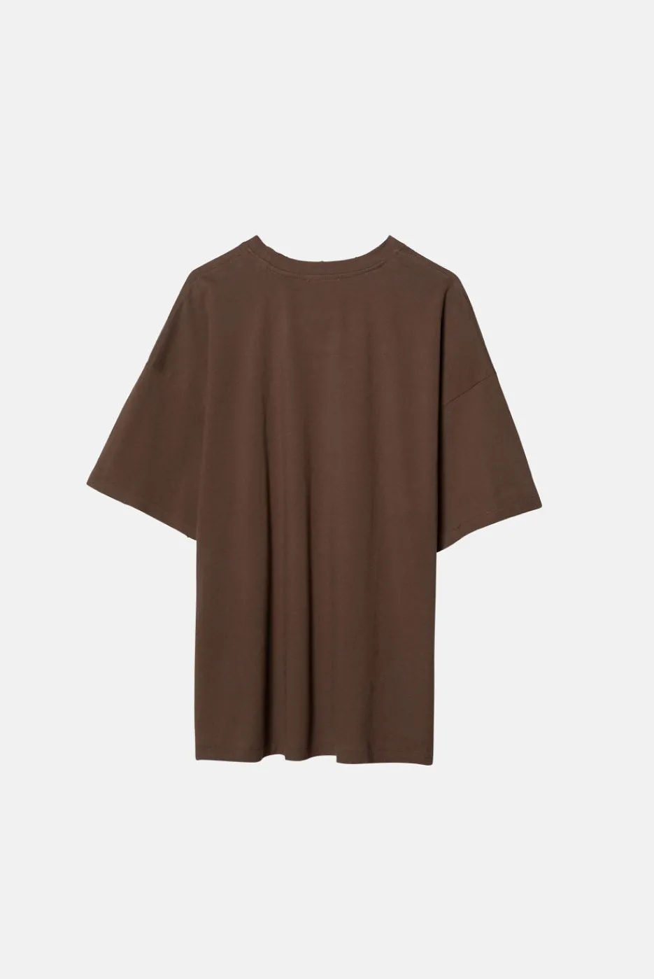 The Dodgy Tee is crafted from pique knit fabric and designed with an oversized, boxy fit. Finished with distressed edges on the neck and hem for a vintage-inspired, lived-in look. Available in Natural and Walnut.