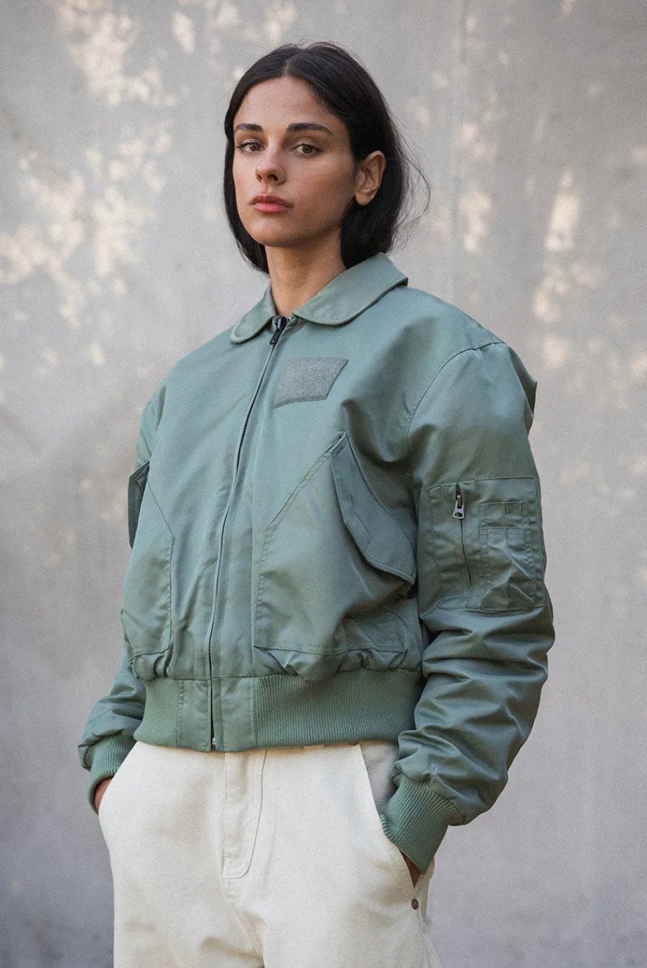 100% NYLON, 173 GSMINSPIRED BY AN AUTHENTIC VINTAGE BOMBER JACKETLIGHTWEIGHTBOXY FITCROPPED LENGTHBROAD SHOULDERSFlight …