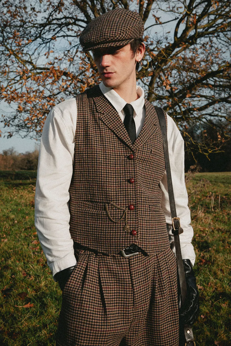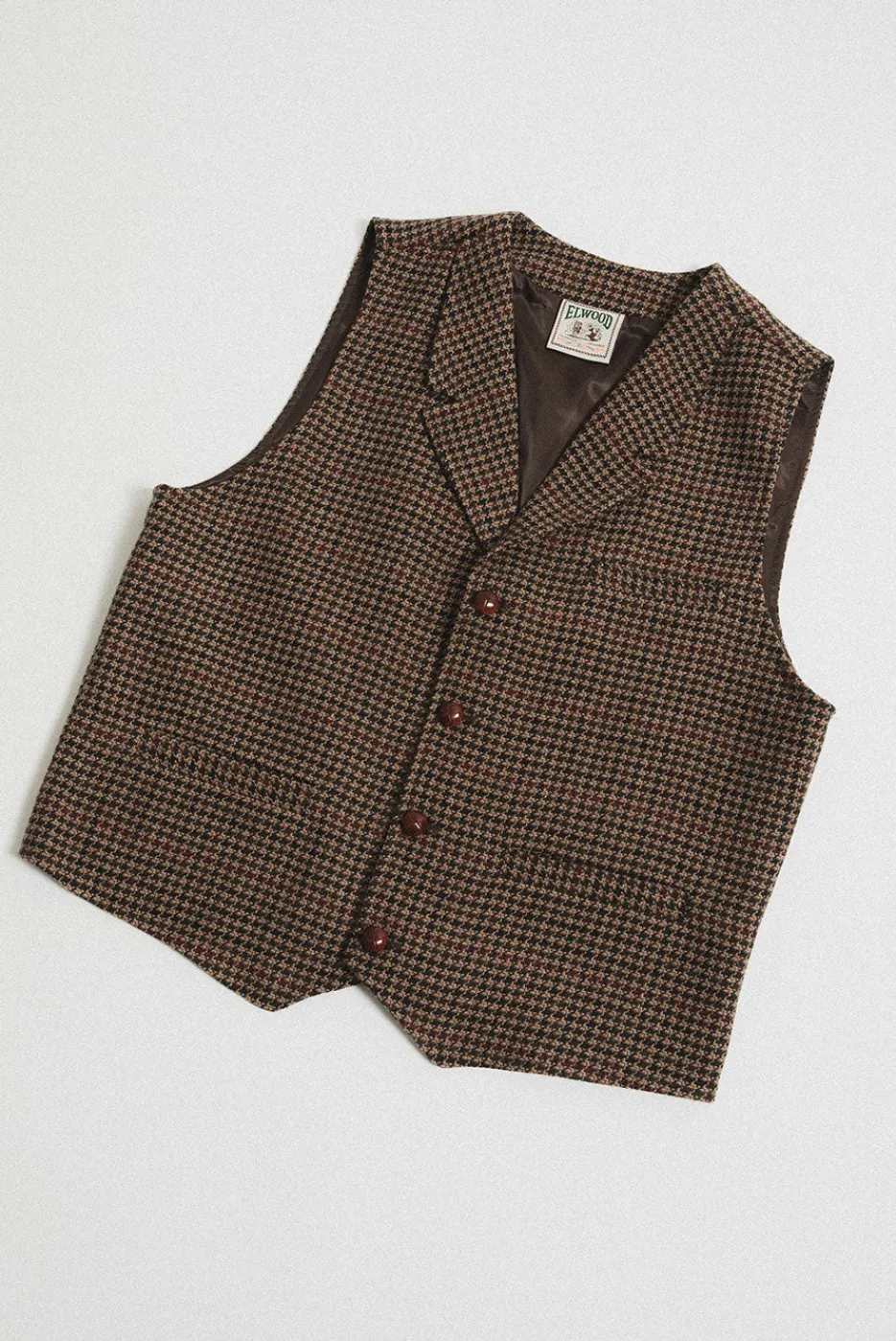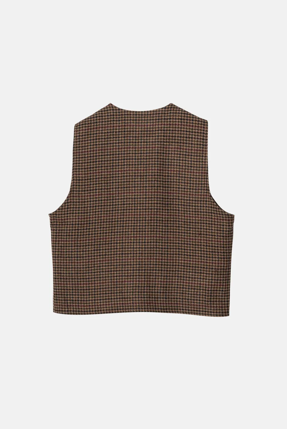 This fitted, tailored vest features leather-wrapped buttons and a tailored silhouette for a polished, vintage-inspired look. Available in ‘Brown Houndstooth’ and designed to match with the Grandad Cropped Blazer and Grandad Pant.