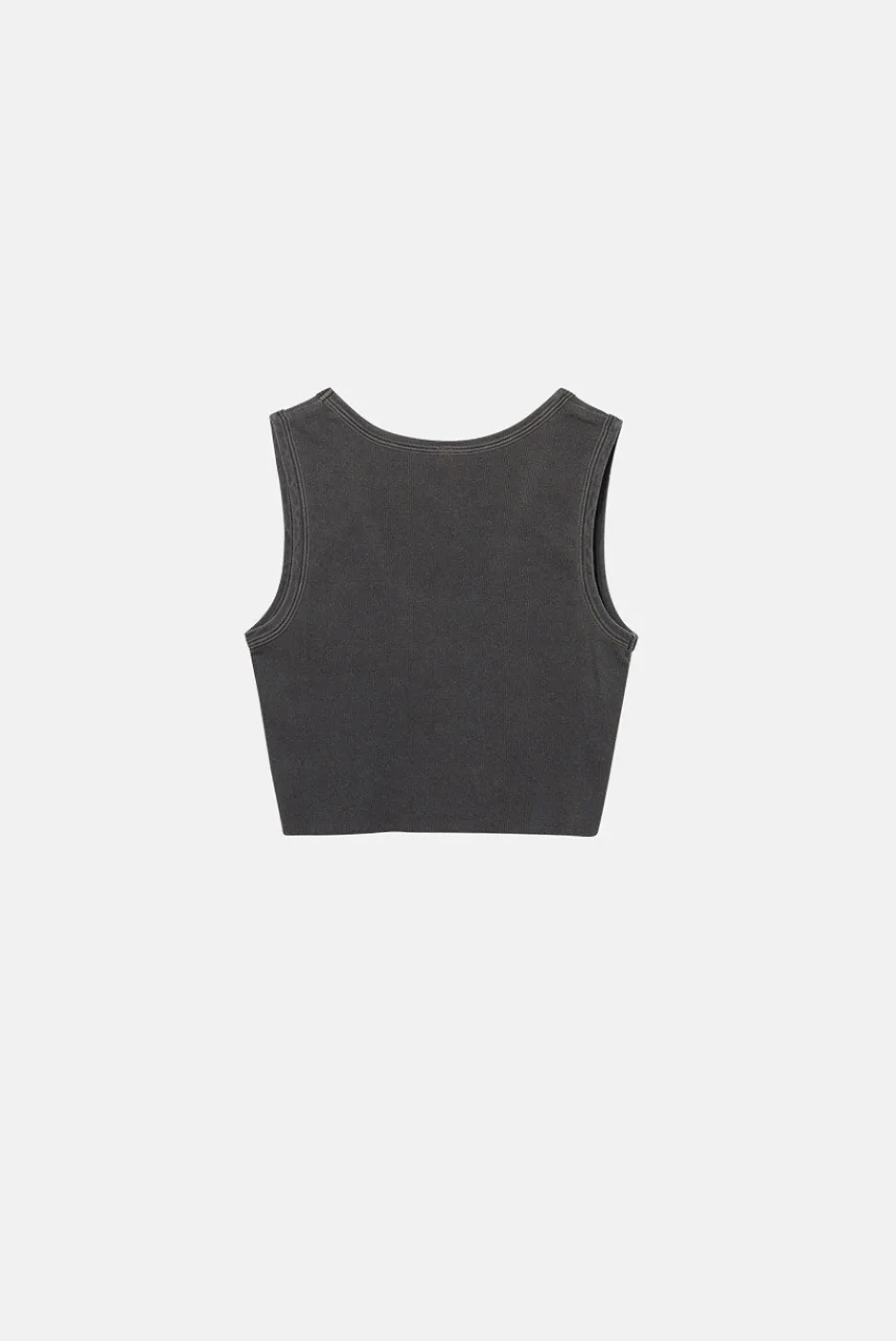 100% ORGANIC COTTON5 OZ SOFT RIBCROP FITRAW EDGESINGLE STITCHEDA 100% cotton rib tank with a vintage-inspired, cropped r…