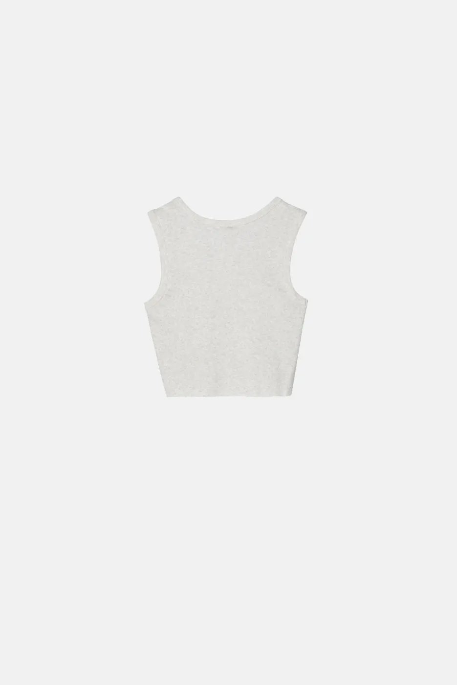 100% ORGANIC COTTON5 OZ SOFT RIBCROP FITRAW EDGESINGLE STITCHEDA 100% cotton rib tank with a vintage-inspired, cropped r…