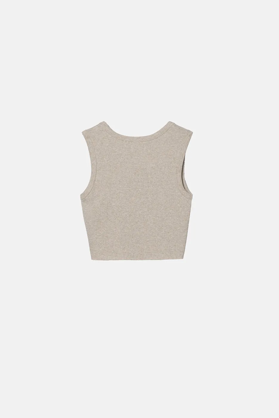 100% ORGANIC COTTON5 OZ SOFT RIBCROP FITRAW EDGESINGLE STITCHEDA 100% cotton rib tank with a vintage-inspired, cropped r…