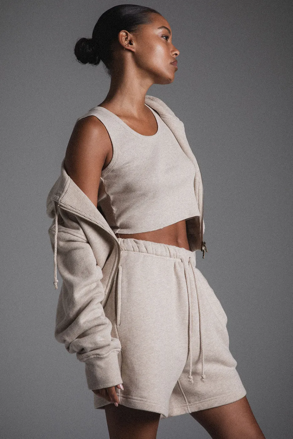 A 100% cotton rib tank with a vintage-inspired, cropped raw-edge hemline. Garment washed for a vintage feel. Perfect for layering or on its own. Your call.
