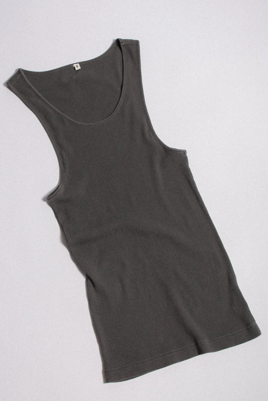An essential lightweight tank for layering. Made with a slightly longer length in single-stitched 100% cotton rib. Garment washed for a vintage feel.
