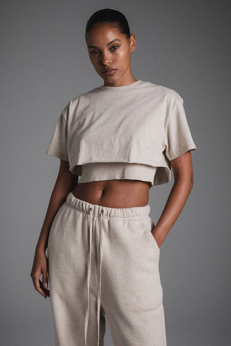 100% ORGANIC COTTON6 OZ JERSEYOVERSIZED FITSUPER CROPPED LENGTHGARMENT WASHEDSINGLE STITCHEDA super-cropped variation on…