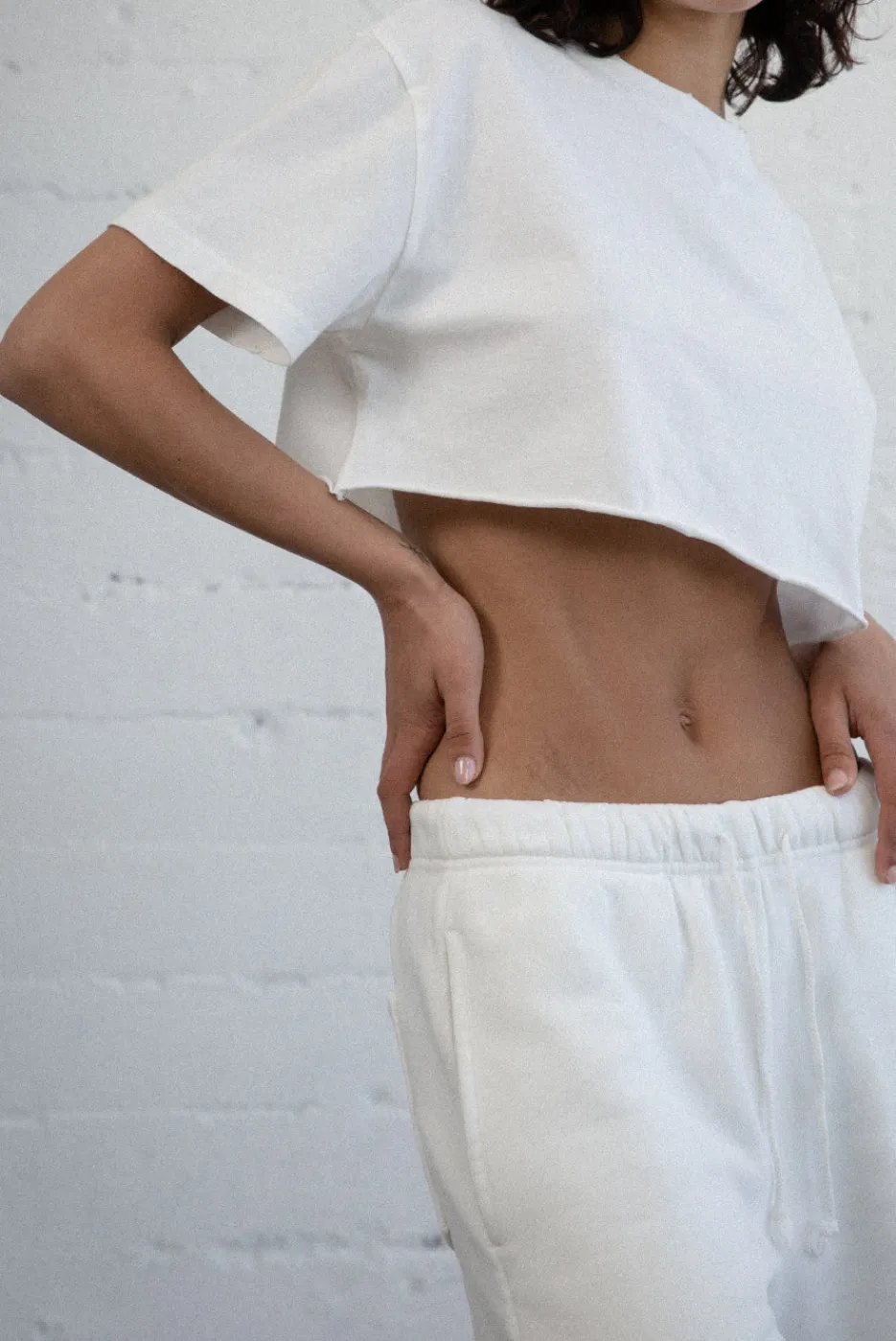 100% ORGANIC COTTON6 OZ JERSEYOVERSIZED FITSUPER CROPPED LENGTHGARMENT WASHEDSINGLE STITCHEDA super-cropped variation on…