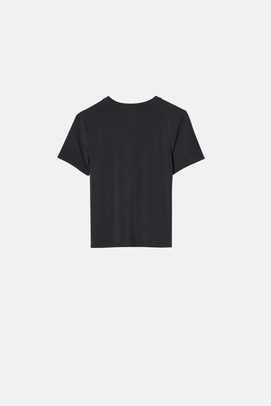 THIN SLICK JERSEY, 90% MODAL, 10% SPANDEXSLIM FITA form-fitting, stretchy women’s tee with a longer fit meant to sit c…