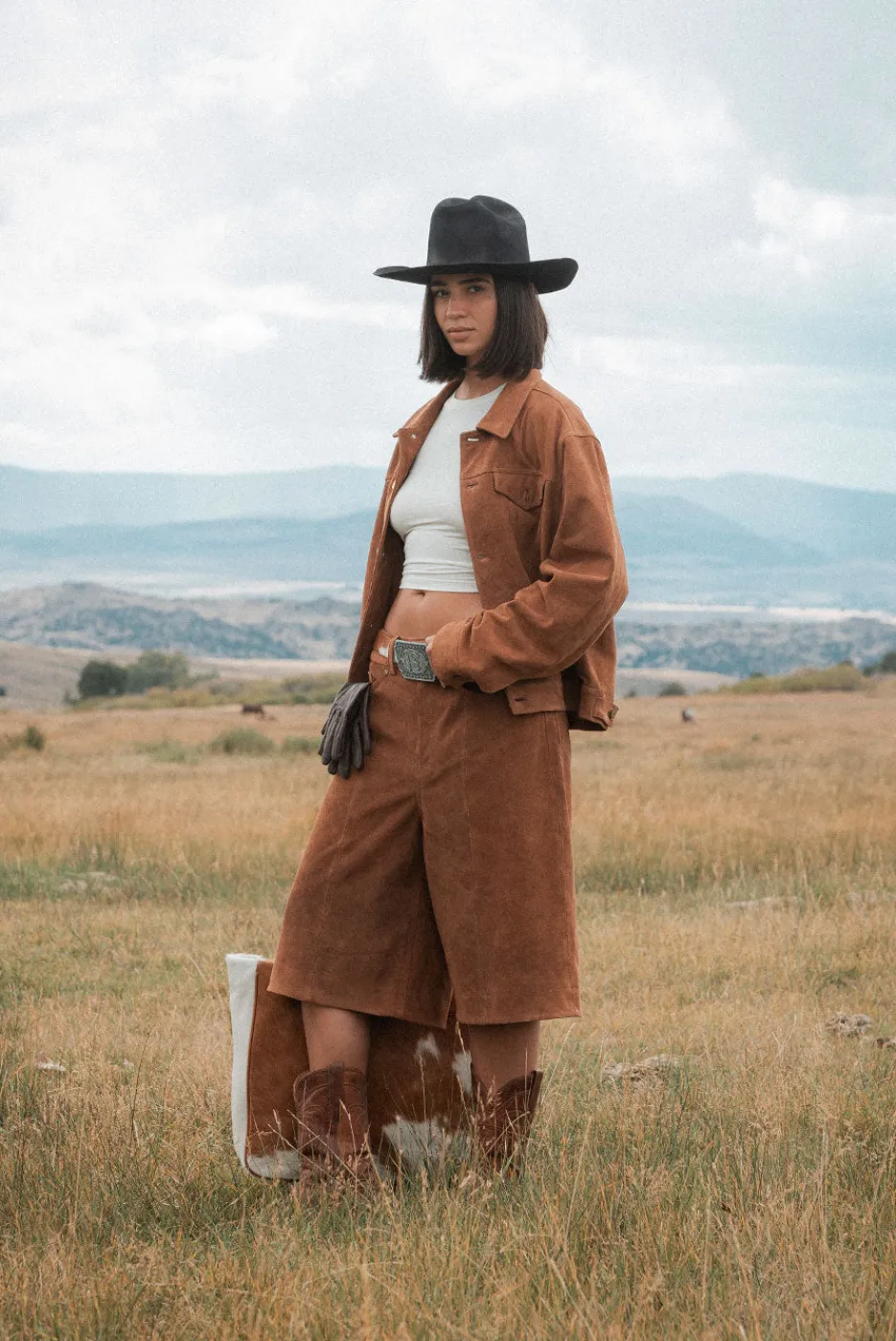 Made from genuine suede with a roomy, extra baggy fit designed to hit below the knee. Features a tonal shank button, custom rivets, and front seam. Additionally, these shorts are lined for comfort and functionality. Available in Brown Suede.